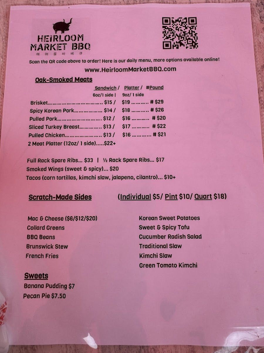 Whether you’re taking your BBQ to-go or enjoying the outdoor standing tables, the food at Heirloom Market BBQ promises an exceptional, flavor-packed experience. Dive into the heart of Southern BBQ with a Korean twist—your taste buds will thank you.